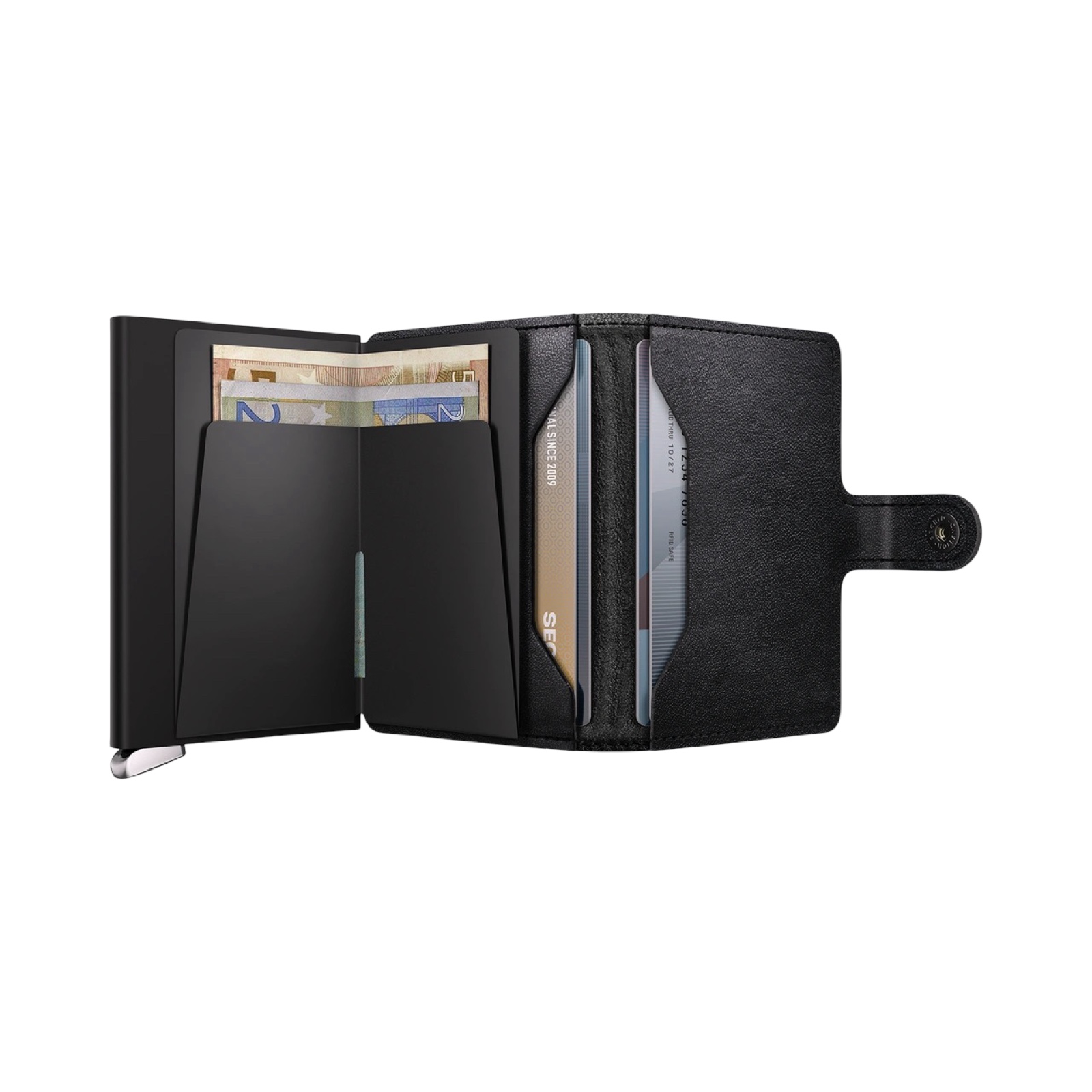 Akį traukianti metalinė svirtis yra pagaminta iš patvaraus nerūdijančio plieno metalo ir yra specialiai sukurta šiai kolekcijai. Tai naujas Secrid mechanizmo evoliucijos žingsnis, kuomet metalinė svirtis padidina ikoninį Secrid paspaudimą kai yra išskleidžiamos Jūsų kortelės.